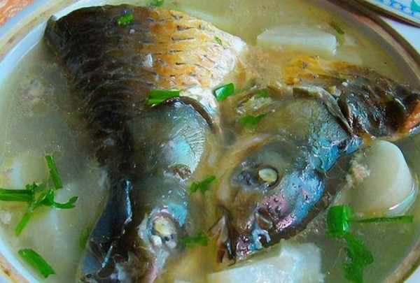 4.放水入锅,放入过水后的萝卜,放入鱼头,加南北杏大火煲一小时。