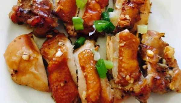 2、把卤熟的土鸡斩成块,加入姜米、蒜泥和自制麻辣油拌匀,装盘后撒些小葱花和熟芝麻,即成。