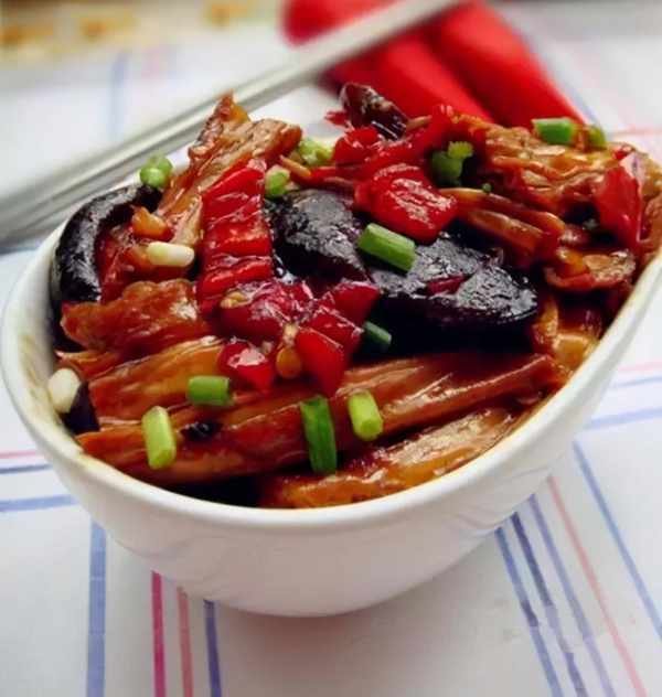 材料:腐竹100g 油适量 盐适量 剁椒适量 黑木耳适量 香菇适量 味精适量 料酒适量 生姜片适量 芝麻油适量。