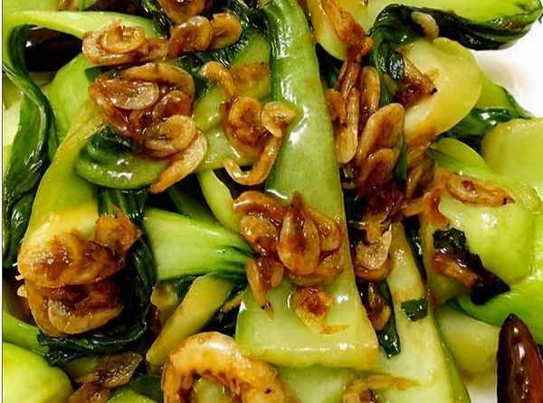 2、虾皮炸至金黄之后加入油菜大火翻炒,待油菜炒软之后加入适量蚝油搅拌均匀即可。
