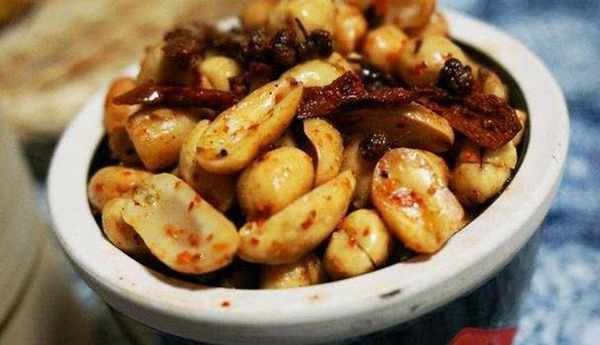 材料:花生豆300克,干辣椒适量,花椒适量,辣椒粉适量,盐少许,食用油适量,水适量,椒盐少许