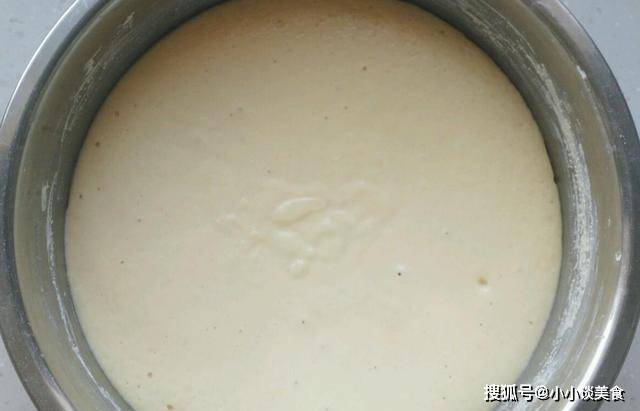 第四步:将发酵好的面团用筷子搅拌几下,让里面的气体排出来,倒入模具中,抹平表面,再次坚持至原来的两倍大,大火蒸熟,转中小火蒸熟蒸。20分钟,关火,煮3分钟出锅,切块食用。