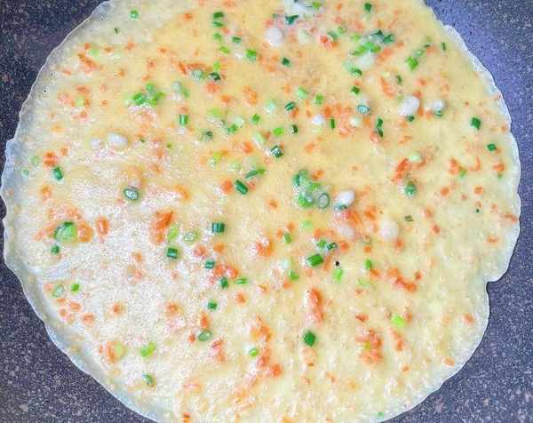 9、继续煎2-3分钟,至面糊表面没有湿粉,然后翻面,再摊2-3分钟,就完成了,盛出。
