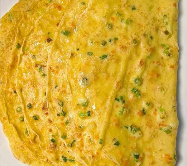 材料:面粉150克,燕麦麸100克,鸡蛋3个,胡萝卜1/4根,葱适量,牛奶250ml,凉白开100ml,盐适量,鸡精适量。