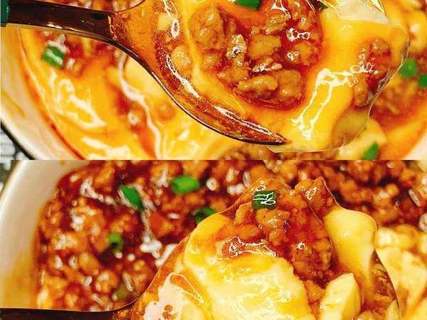 7、把肉末均匀淋在蒸好的鸡蛋羹上,完成。
