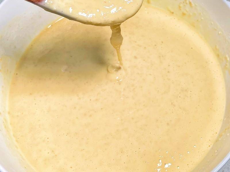 4、再加入250ml的纯牛奶和50ml的凉白开水,继续搅拌。