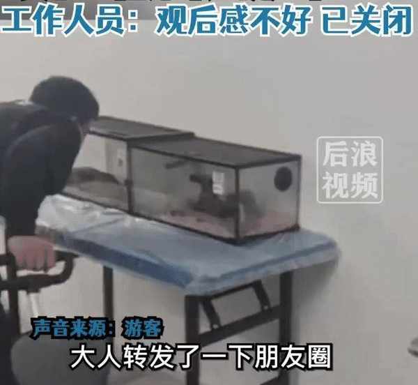 可是女子和孩子满脸期待进去,却傻眼了!这里没孩子想看的大海龟,海豹,海马。有的只有几个鱼缸,里面有几条鱼在游动。还有小蜥蜴和小章鱼,旁边还有一只羊驼和几只小兔子,整个地方就客厅大小……