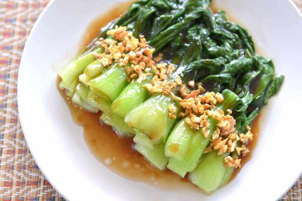 3.在锅中倒油,加热到6成热,放入蒜末爆香,再把料汁放入烧至沸腾,关火之后淋在生菜上即可。