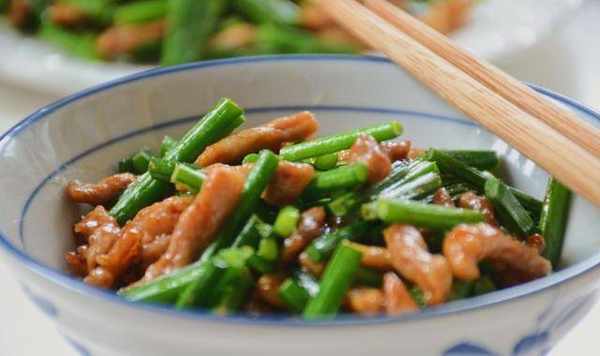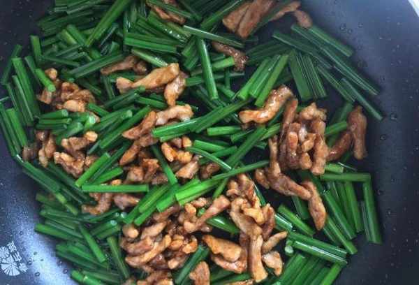 配料:韭菜苔、猪肉、盐、料酒、生抽、老抽、胡椒粉、淀粉、油。练习步骤:
