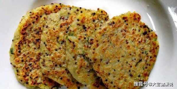 第三步:平底锅烧热,倒入适量油,然后用勺子将藜麦奶油舀入锅中,稍稍压扁,一个一个做成小饼,煎至一面凝固,翻面煎至最后煮至两面金黄。