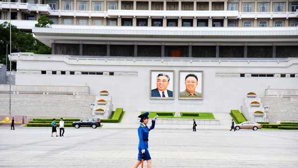 2014年以前,国外街头很少见到红绿灯。现如今平壤街头红绿灯随处可见。因为平壤路况简单,不像国内各种立交桥纵横交错,所以红绿灯设置也非常简单。平壤的路口安装了摄像头,虽然有红绿灯和摄像头,但依旧有女对方执勤。很多时候,能看到女对方在红绿灯旁指挥交通。