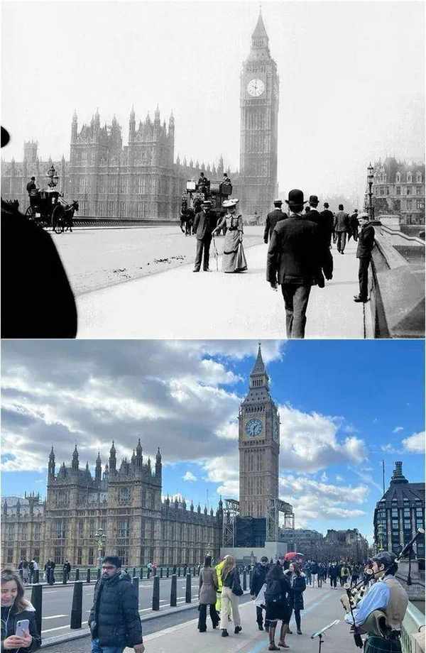 地点:国外威斯敏斯特市,时间:上图1900年,下图2023年