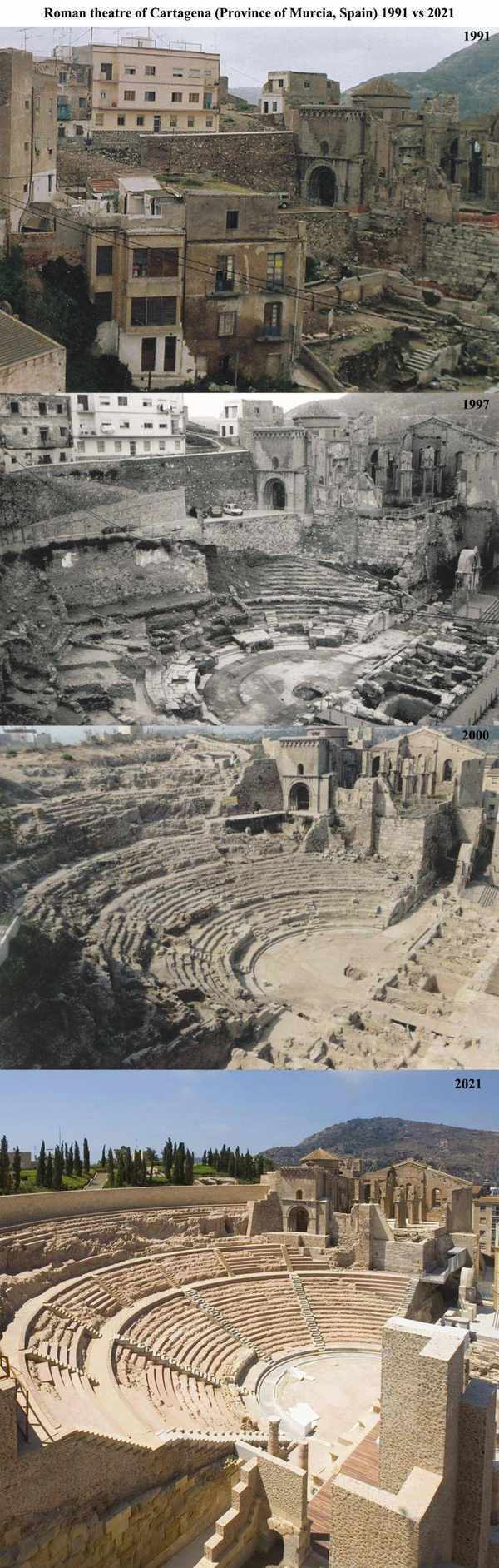 地点:西班牙卡塔赫纳市,时间:第一图1991年,第二图1997年,第三图2000年,第四图2023年