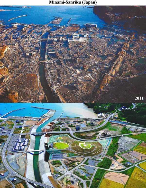 一场地震将这里变成了上图的模样,经过9年的建设变成了下图的模样。