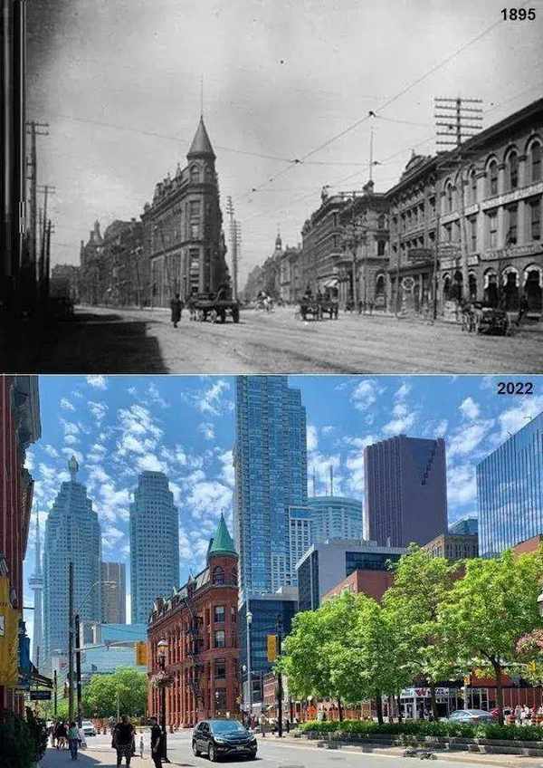 地点:加拿大多伦多市,时间:上图1895年,下图2023年