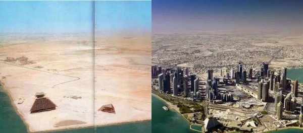 地点:卡塔尔多哈市,时间:左图1978年,右图2023年
