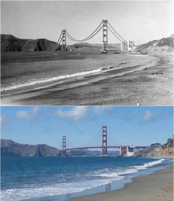 地点:国外旧金山市,时间:上图1937年,下图2023年