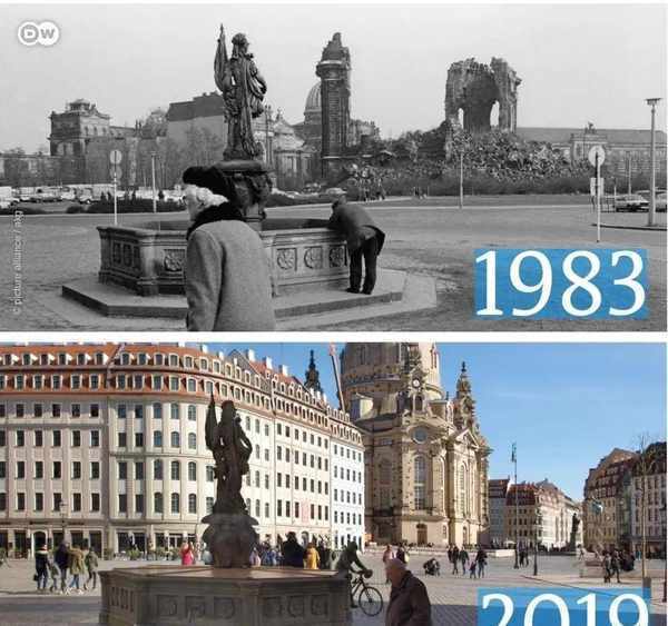 地点:国外德累斯顿市,时间:上图1983年,下图2023年