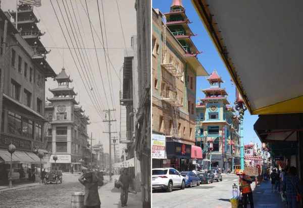 地点:国外旧金山市,时间:左图1909年,右图2023年