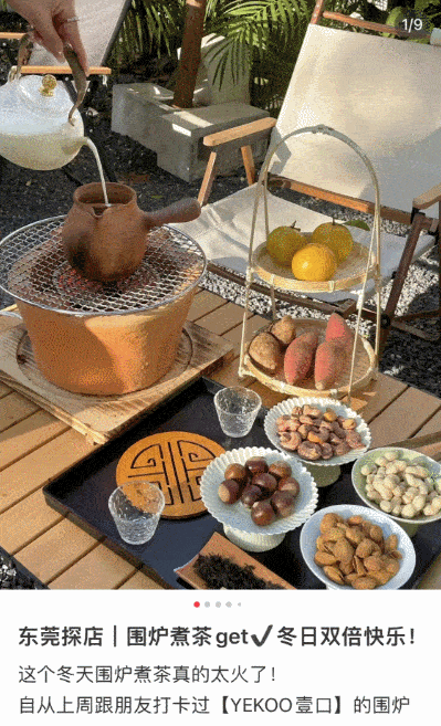 社交媒体上的围炉煮茶。如同此刻流行的热红酒和围炉煮茶,与十元盒饭和乡村宴席,像歌中所唱,是“霓虹灯到月亮的距离”。