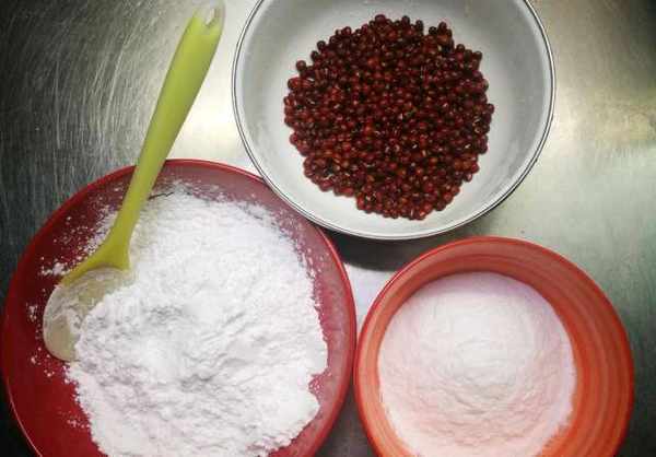 材料:红豆100克,白糖70克,木薯粉100克,水250毫升。练习步骤:
