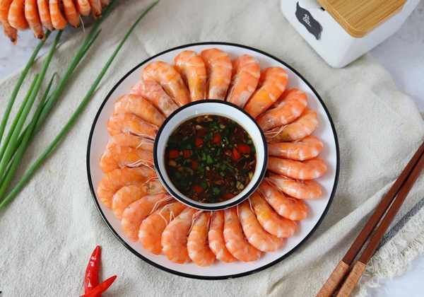 9 虾沥干水分以后,摆盘蘸以蘸料即可食用。
