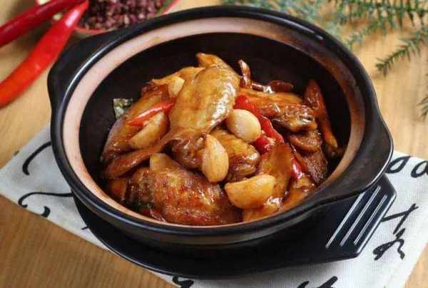 7 将烧鸡块放入砂锅里,转大火,续翻炒均匀。
