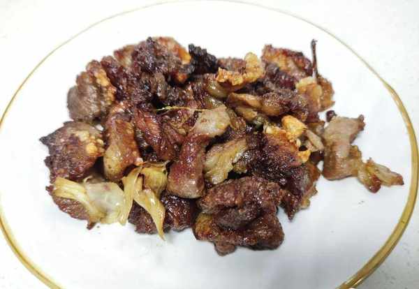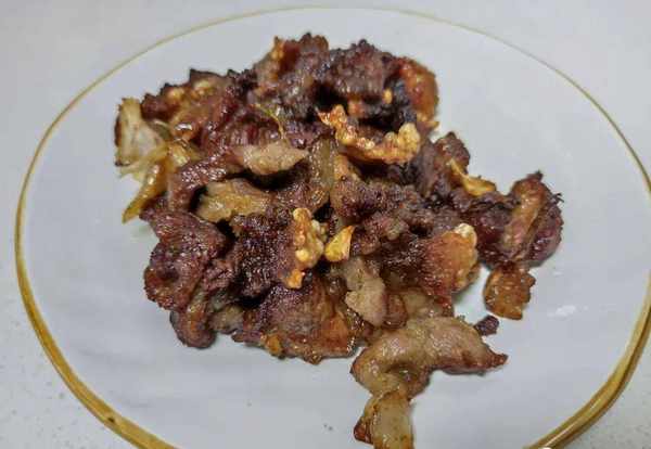 5.很快这样子一份鲜香美味的烤三层肉就完成,经过煸炒肥肉中的油脂都被炸出来,所以吃起来的话相对的清爽,一点都不要油腻,很是入味好吃。