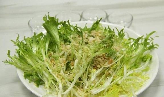 人们总觉得减肥吃的菜不太好吃,蔬菜呢没味道,就像是牛在吃草一样乏味。今天这道菜可不一样,它利用了花生碎提香味,同时也丰富了营养价值。苦菊中含蛋白质,膳食纤维较高,钙、磷、锌、铜、铁、锰等微量元素较全。同时,花生也是一种高营养的食品,它属于高热量、高蛋白、高纤维食物,可以增加饱腹感,也就是通常所说的“比较抗饿”。据研究,花生引起的饱腹感是其他高碳水化合物食物的5倍,吃花生后就可以相对减少对其他食品的需要,降低身体总热量的汲取,从而达到减肥效果。同时对于心脏、胆固醇、止血方面也大有益处。
