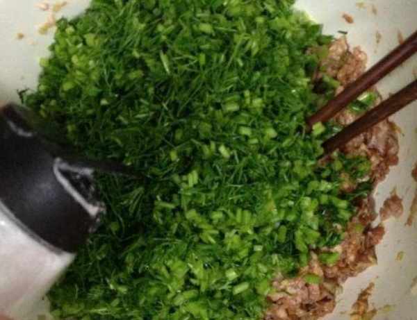 第三步:最后在肉馅里撒上茴香,撒上适量的盐拌匀,包饺子的时候最后倒入适量的盐和香油拌匀成馅的饺子。.