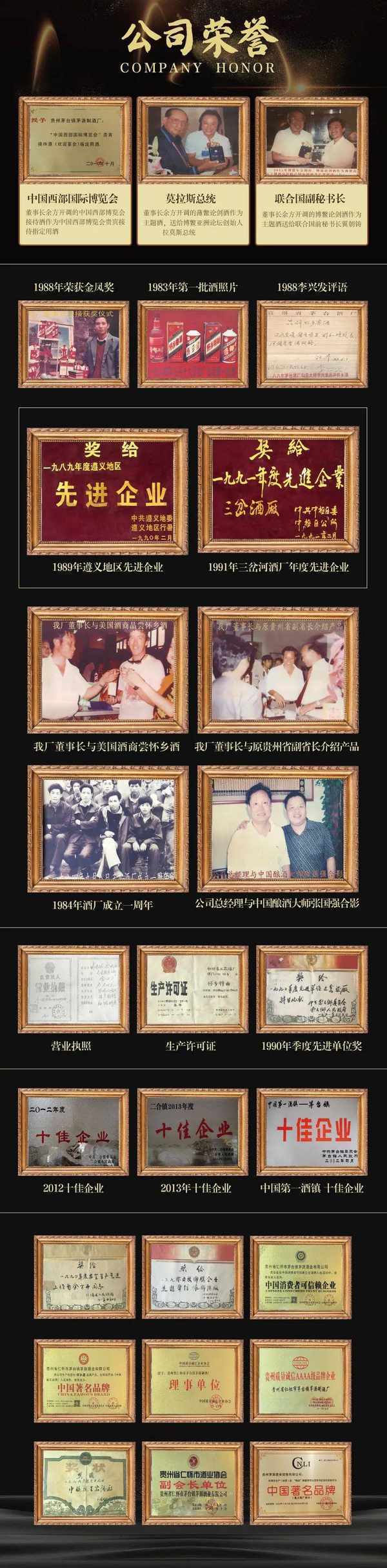酒厂介绍:贵州省仁怀市茅台镇茅源酒业有限公司(前身为 余家 烧坊),道光年间(公元1828年)“ 余 富贵 ”就已在贵州茅台镇酿酒 并 创立余家烧坊 , 1983年改革开放初期时任村长的余方开先生响应国家号召和轻工局联合在三岔河渡口成立仁怀县三岔酒厂,也是当时茅台镇仅有的五家酒厂之一。199 0 年6月改制更名为贵州省仁怀市茅台镇茅源制酒厂(“茅源”意为茅台镇 酿造 酱香型 白酒 的“源”头)。2013年7月再次更名为贵州省仁怀市茅台镇茅源酒业有限公司。公司位于驰名中外的中国酒都茅台镇,赤水河畔阳面7.5平方公里核心酱香产区内,海拔370米,与国酒茅台同享得天独厚的自然资源和传统酱香工艺,是一家专业从事酱香白酒生产、开发、销售于 一 身的酒类专营企业,历经三十年 多 的艰苦创业,由一个小作坊,发展成为拥有固定资产一亿多元,流动 资金 两亿多元的大中型企业,酒厂实力雄厚,现有两个厂区 , 新厂规划面积达 200余亩,4 个基酒生产车间,2个制曲车间,2个包装车间,并配有2条现代化罐装包装生产线,年生产优质基 酒 3 000余吨,储酒能力 达 8000余吨,有现代化的勾兑,过滤,罐装设备和一流的产品检验、化验设备。企业通 过了 10001-2008国际质量管理体系、HACCP管理体系认证,公司拥有十多种自有知识产权的品牌酒系列产品;1988年荣获贵州省乡镇企业“金凤杯”金奖;1991 年荣获遵义地区先进企业奖;1999 年被遵义市消费者协会评为“诚信单位”;2002 年被仁怀市政府评为“茅台镇十佳企业。2019年被认证为仁怀市酒业协会副会长单位。 其生产规模,销售能力位居中国酒都仁怀十强,是茅台镇历史悠久的酱香白酒生产企业之一。
