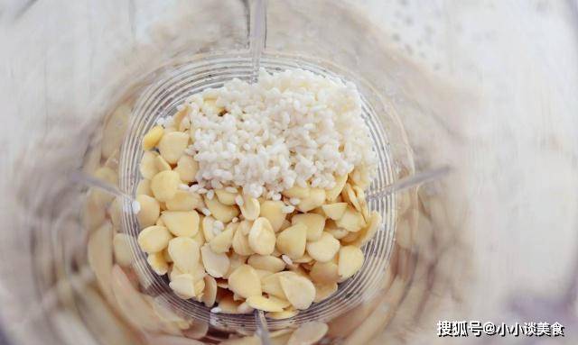 第二步:将泡好的糯米和杏仁放入沸腾的杯子中,加水,杏仁鲁中的石头打碎,加入冰糖加热至100度,倒入碗或杯中即可饮用。