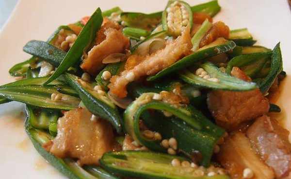 最后,用清水冲洗干净,锅中加入冷水,加入几滴食用油,烧开,然后将秋葵倒入水中焯一分钟左右。