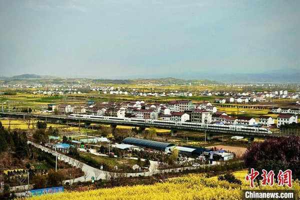 图为动车组穿越陕西汉中油菜花海。 周博伦 摄