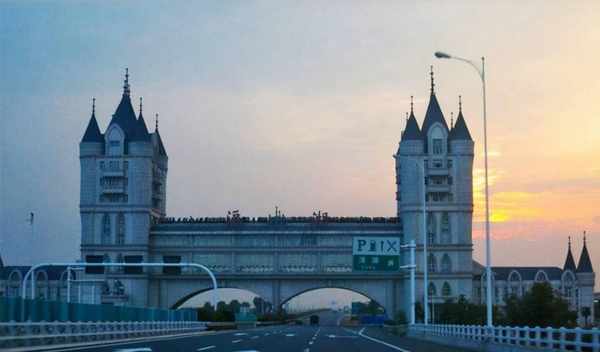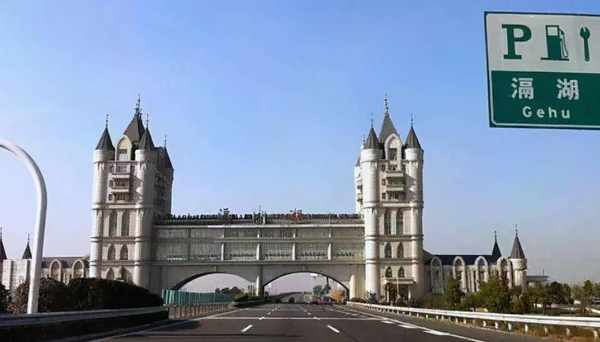 它的服务区就像一座高楼,直接穿过高速公路,两边可以看到葛湖水。景色特别美,就像一座城堡宫殿。