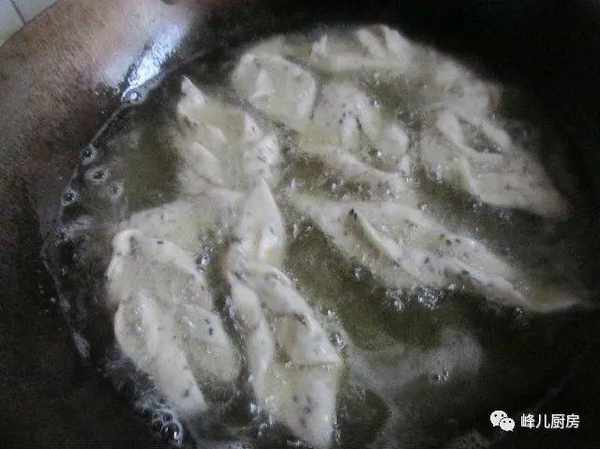 8、锅里放油,七成热时放入麻叶。