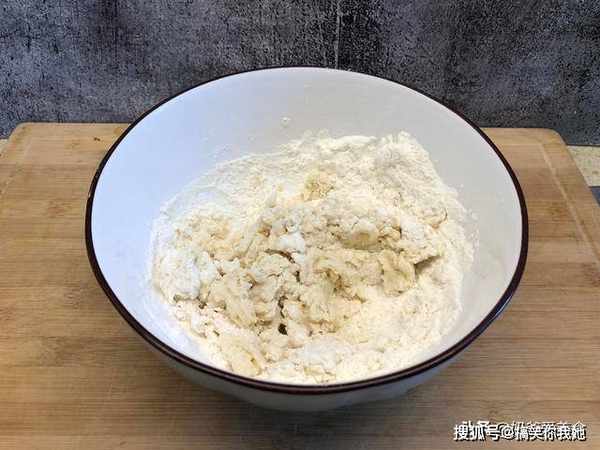 3、加入之前静止好的纯牛奶,用筷子顺着一个方向搅拌成棉絮状,然后下手和成不沾手的面团。