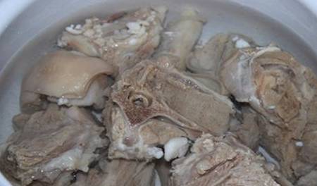制作方法:准备好所有食材,我用的是两个羊小腿,如果没有羊小腿可以使用羊骨头一斤,我用的是羊窝骨。用清水提前浸泡1小时以上,中间注意换水,可以去除膻味。
