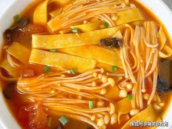 金针菇,番茄,豆皮,木耳,葱花,蒜末,食用油,食盐。
