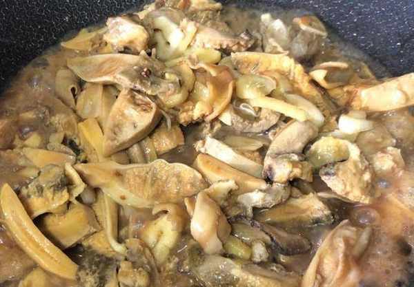 第五步:继续倒入河蚌肉拌匀,继续倒入适量的生抽、盐、蚝油和料酒,炒匀入味后装盘。