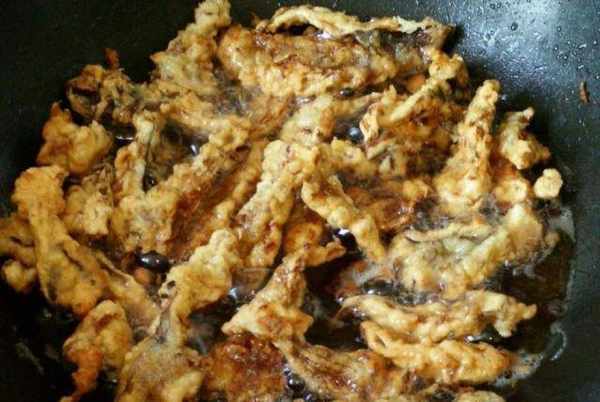 第六步:锅中再倒入少许食用油,烧热后放入裹好面糊的香菇。