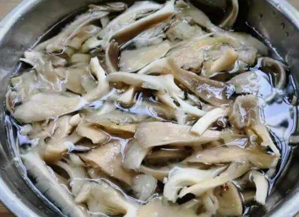 第二步:然后将香菇放入盆中,倒入没过香菇的开水,稍稍晾干,最后将香菇取出,挤出水分。