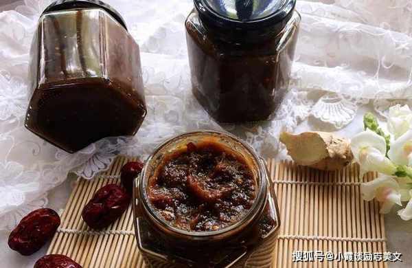 第四步:将煮好的红糖姜枣泥趁热放入密封罐中,盖上盖子倒置冷却,形成有利于保存的真空条件,然后放入冷藏室。饮用时取一两汤匙,加温水冲服。