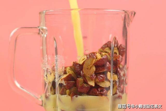 第二步:然后将老姜放入榨汁机中打成姜汁,再将姜汁和红枣放入搅拌机中搅拌均匀。