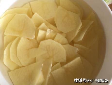 第一步:土豆去掉外皮,用清水洗净,切成薄片。