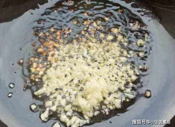 第五步:在平底锅中加热油。当油沸腾时,加入切碎的大蒜,炒香。然后将混合好的汁倒入碗中,炒匀。