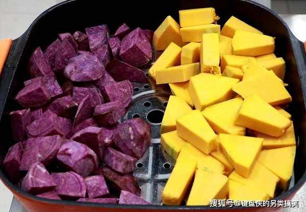 准备几个紫薯,同样削掉外皮切成小块。
