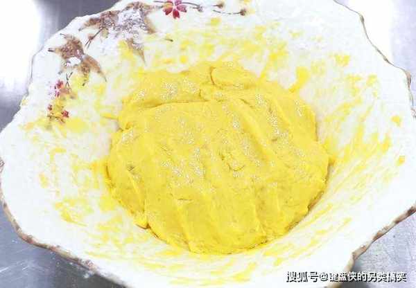 蒸熟以后把南瓜和紫薯分别盛放在盆中,先用勺子把南瓜压成细腻的南瓜泥,放入白糖10克,糯米粉50克掺匀,和成糯米南瓜团即可,在上面抹一层植物油,以免我们做的饼的时候沾手。