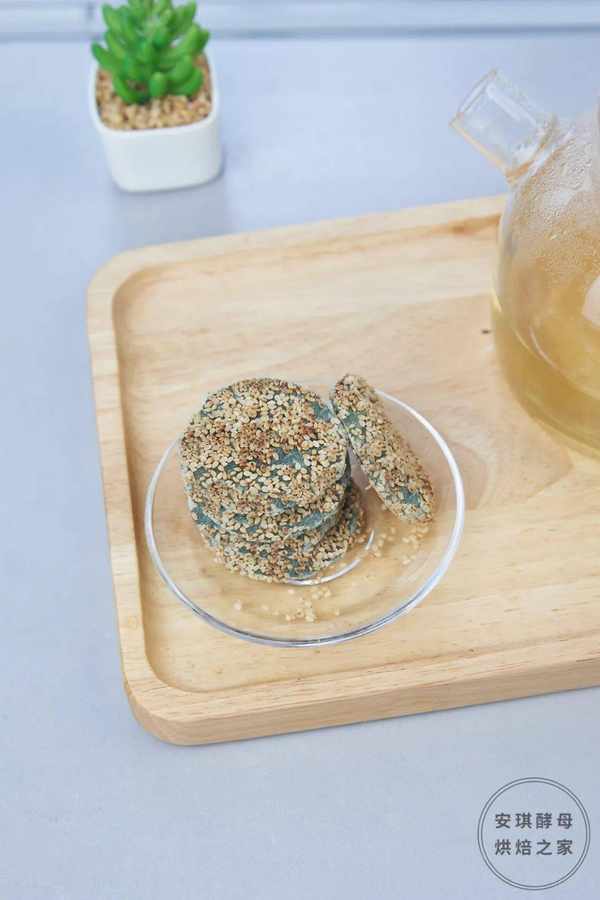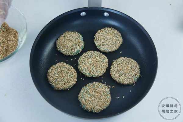 这款艾草山药饼做起来很简单,山药蒸熟捣成泥后和艾草粉、黄油、糯米粉混合,按压成饼状,粘上芝麻,再用平底锅烙熟就可以了。