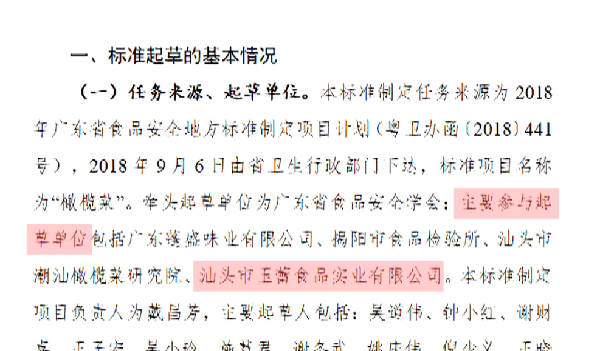 值得一提的是2020年7月31日,广东省卫生健康委员会发布《广东省食品安全地方标准橄榄菜》(DBS 44 014-2019),其中明确要求原料芥菜应新鲜、无霉变腐烂现象,而玉蕾食品实业有限公司正是该标准的起草单位之一。